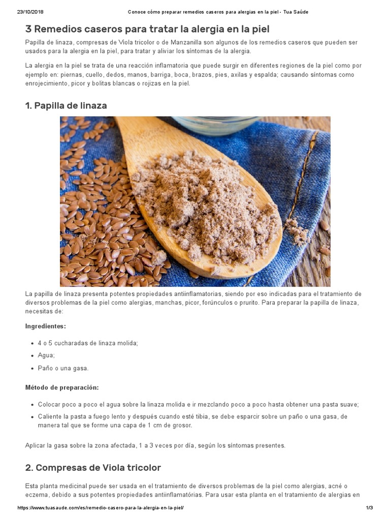 Conoce Como Preparar Remedios Caseros Para Alergias En La Piel Tua Saude Pdf